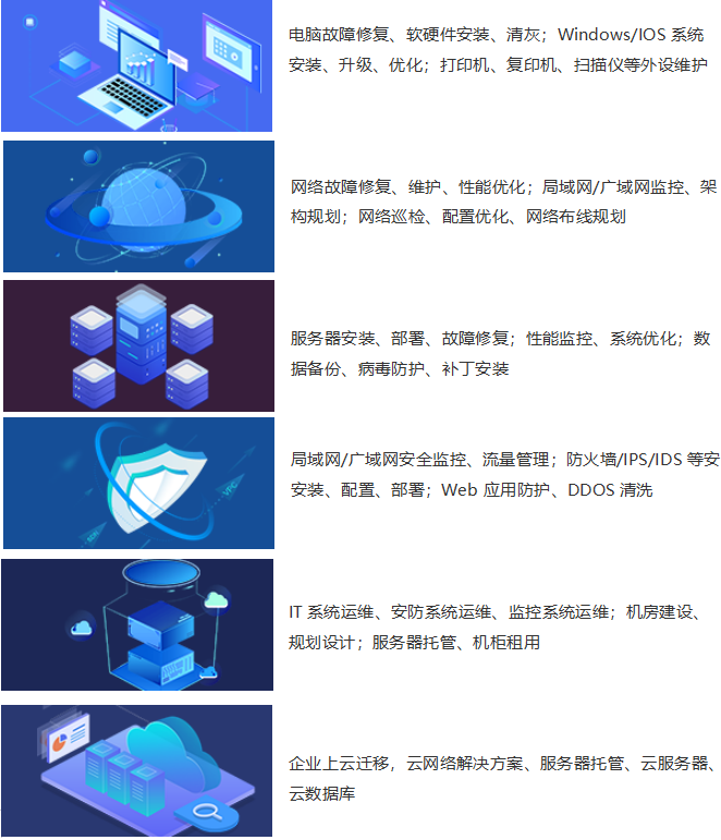 电脑维护 机房维护 服务器托管 服务器维护 网络维护 云安全 云咨询